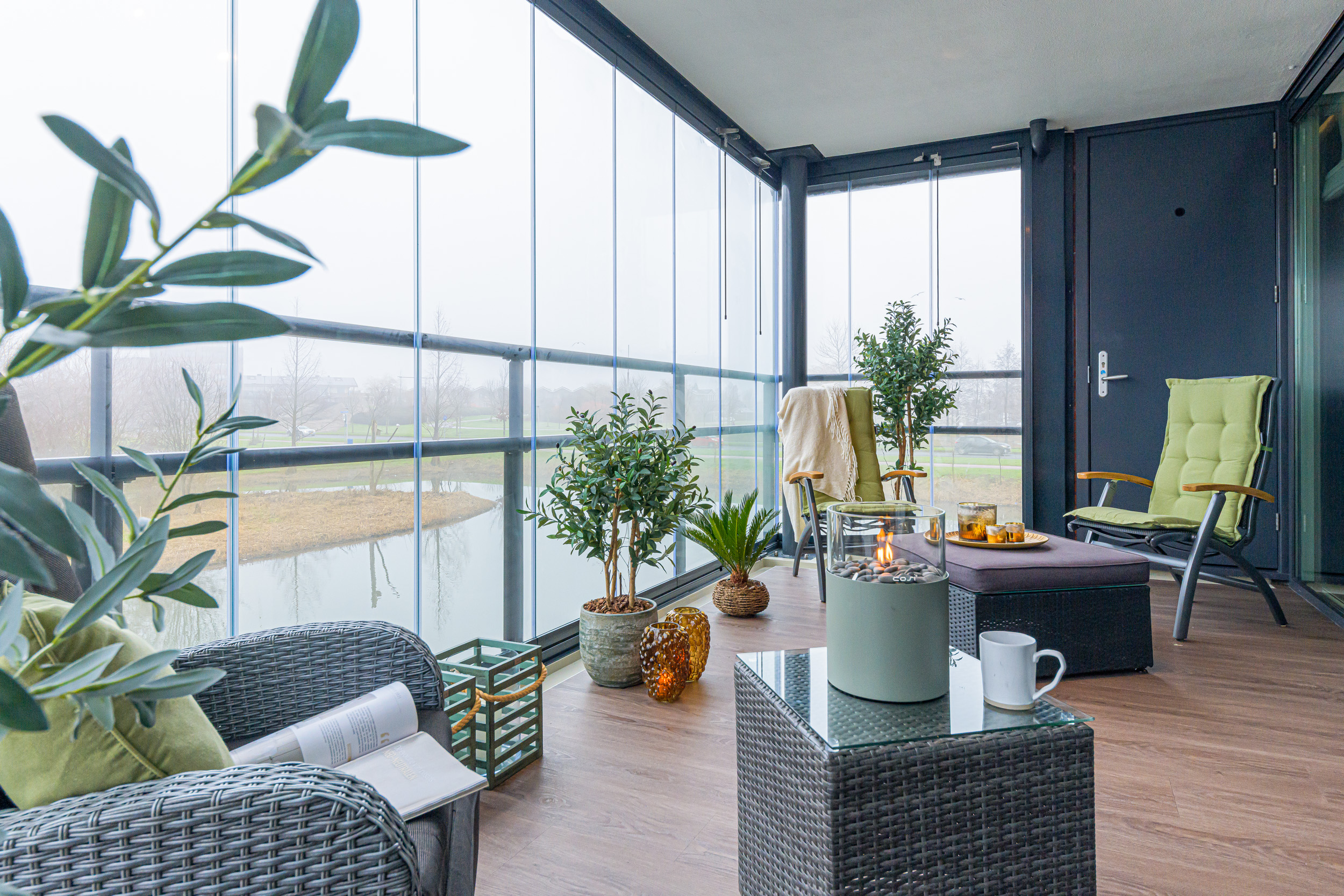 Door de toevoeging van balkonbeglazing is het balkon een comfortabele plek geworden om te ontspannen. Beschut wanneer nodig, open wanneer gewenst.