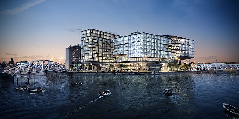 Op de kop van het Oosterdokseiland in Amsterdam bouwt Züblin Nederland B.V. het internationale hoofdkantoor van Booking.com.