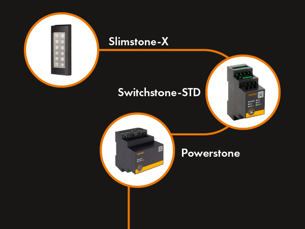 De Switchstone-STD externe relais, specifiek ontwikkeld voor de combinatie van de Slimstone-X, kan op een veilige plaats in de paal of binnen het gebouw worden geïnstalleerd en de Powerstone is de meest aangewezen (60W) voeding voor beide producten. Deze drie elektronische producten communiceren via een eenvoudige tweedraadskabel, waarmee de installateur of zelfs eindconsument nooit fout kan zitten.