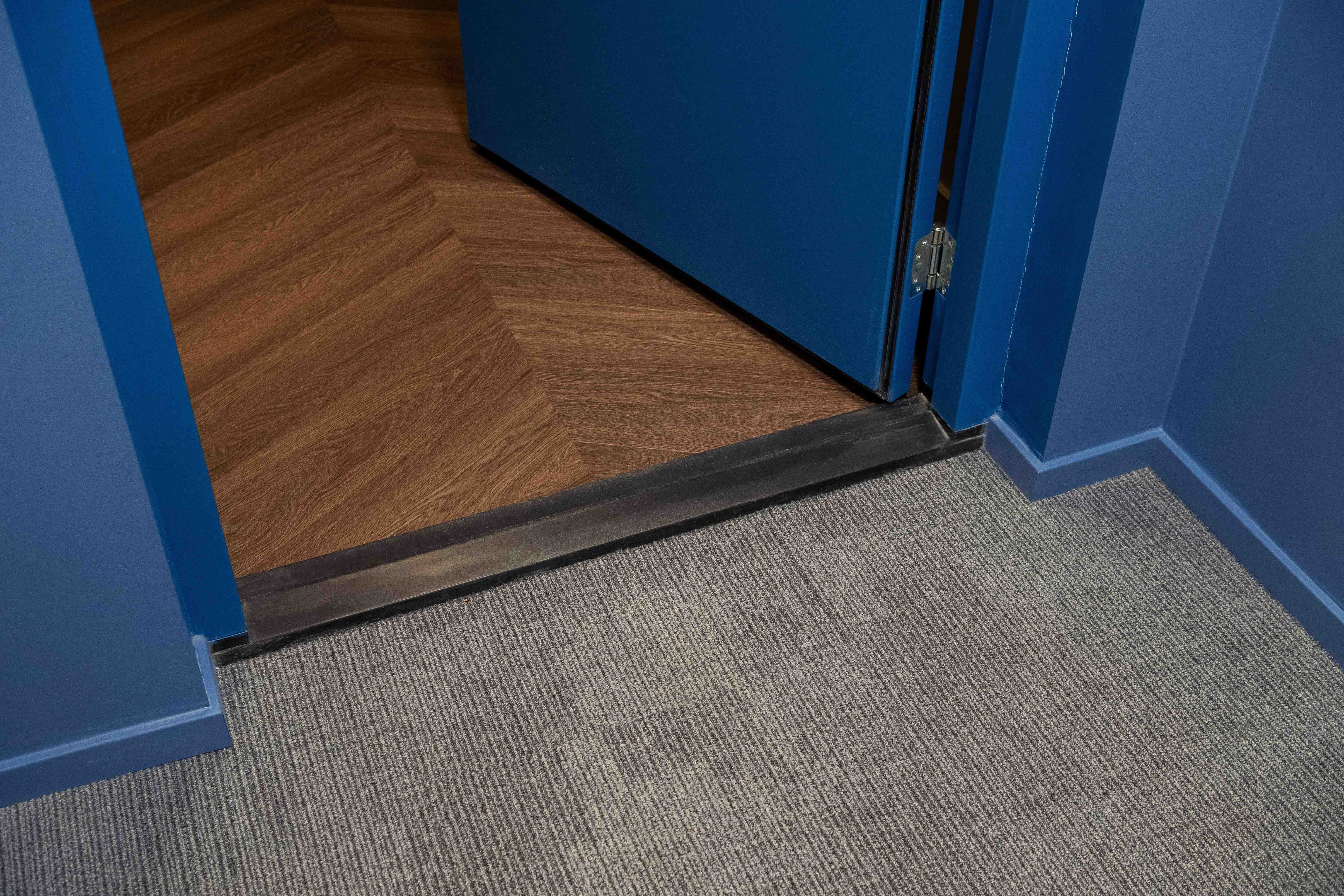 De Brug Timmerfabriek Son BV, verantwoordelijk voor de kozijnen in dit project, koos daarom voor de Holonite Trimax Silent Base 51 laagreliëfdorpels. Deze dorpels zijn specifiek ontwikkeld voor inpandige situaties waar waterbelasting geen rol speelt, maar waar akoestische isolatie en brandvertraging de hoogste prioriteit hebben. Voor de perfecte overgang tussen de publieke hal en de private woning.