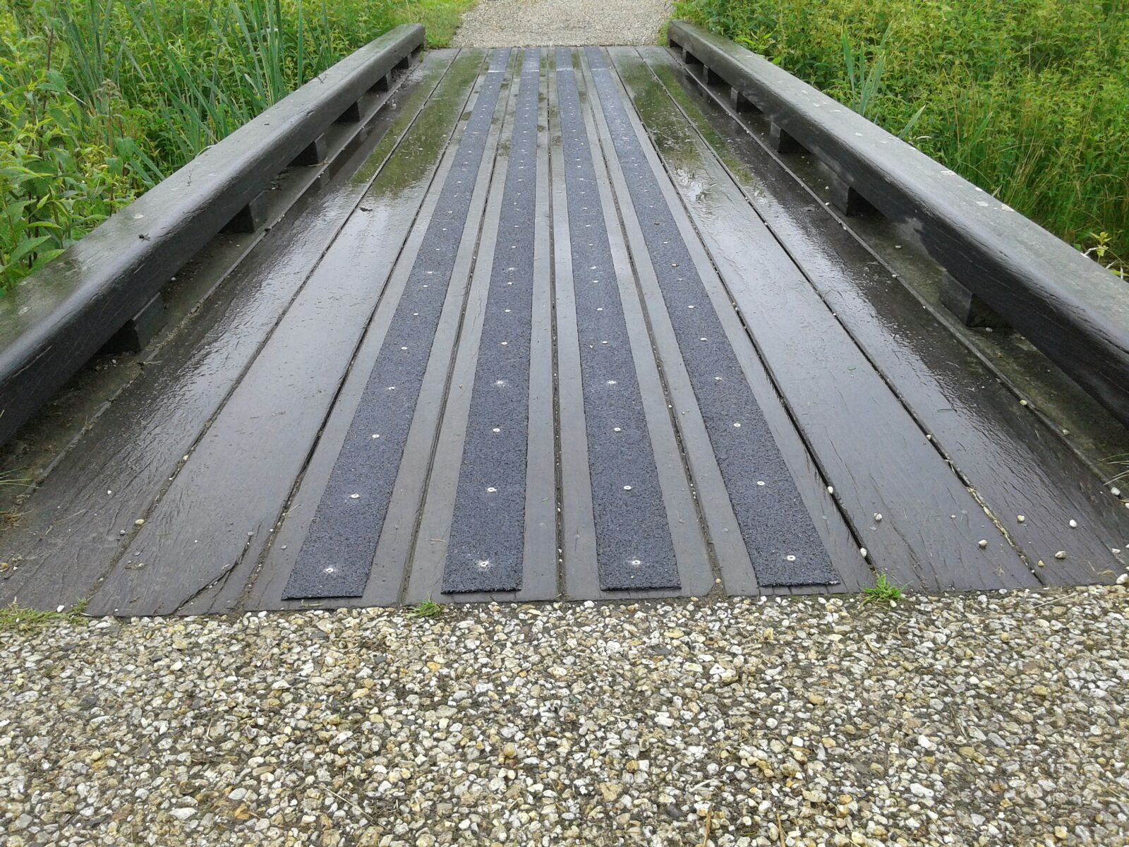 Door weersinvloeden kunnen houten steigers, trappen en looppaden erg glad worden. Dit probleem kan opgelost worden met Ultragrip antislip vlonderstrips.