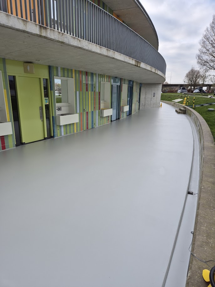 Bij Camping Zeeburg Amsterdam hebben we het sanitair gebouw voorzien van een duurzame Triflex coating.