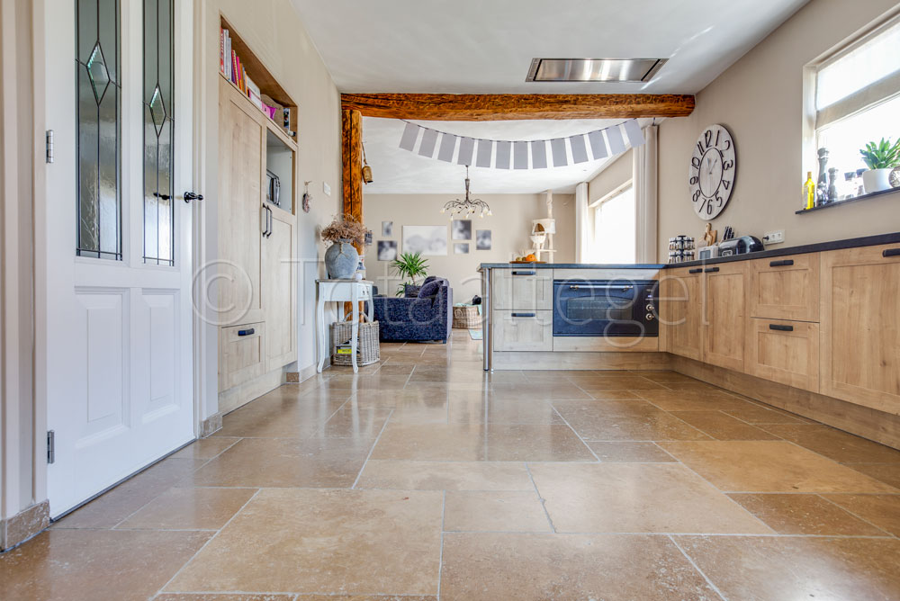 Basalt is een vrij harde natuursteensoort, waardoor krassen minder snel zichtbaar zijn. De meeste basalt soorten hebben een donkere kleur en worden vaak toegepast bij een moderne inrichting. - Travertin vloertegels