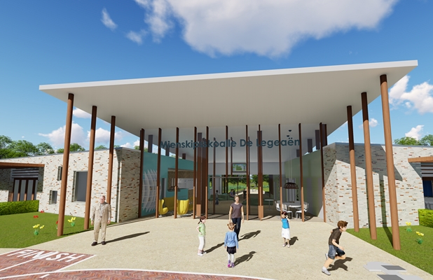 Gorter Luiken levert in opdracht van BMN Noord Sneek een RHT-dakluik met schaartrap voor de toetreding van het dak van de fusieschool De Legeaën.
